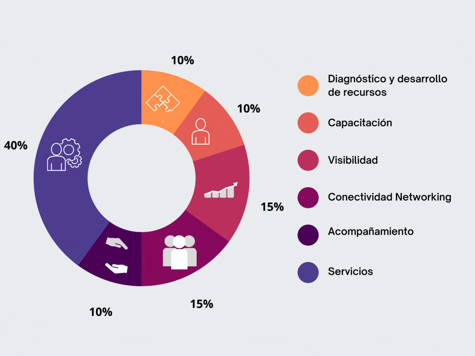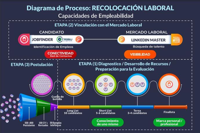 Trabajamos en todas las etapas del proceso, fortaleciendo todas las variables que participan en el proceso de recolocación, superando todos los estándares usados en el outplacement tradicional.